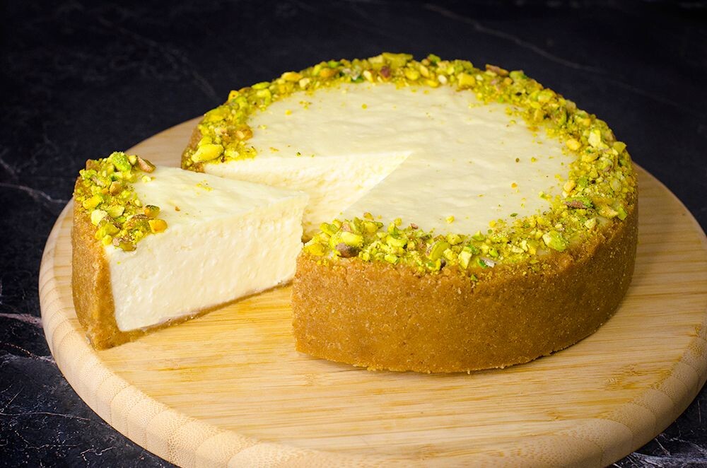 мука, сливочное масло, яйца, ванильный сахар, мягкий творог, молоко, пудинг, сметана, разрыхлитель, фисташки.
